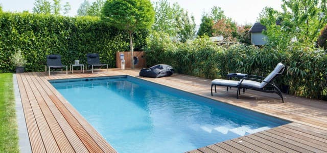 Bể bơi này vẫn giữ kiểu dáng là hình chữ nhật quen thuộc nhưng chúng lại có sự phá cách khi được trang bị thêm bậc thang từ thềm xuống đáy. Người dùng có thể tận dụng không gian sân vườn xung quanh để xây dựng hay tổ chức các bữa tiệc ấm cúng bên gia đình, bạn bè và người thân.